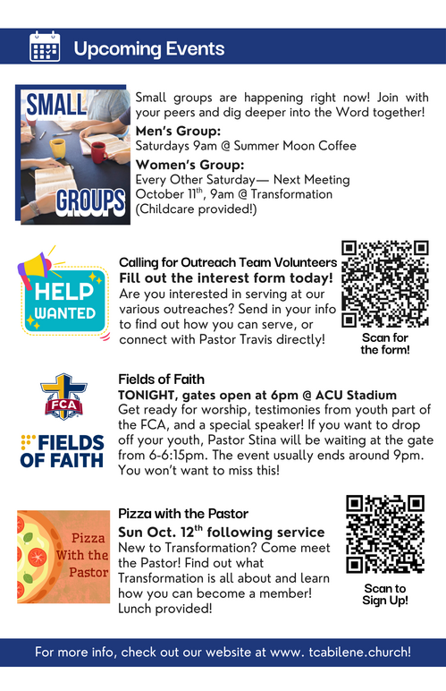 Transformation is a young church family that is all about connection with God and with one another!